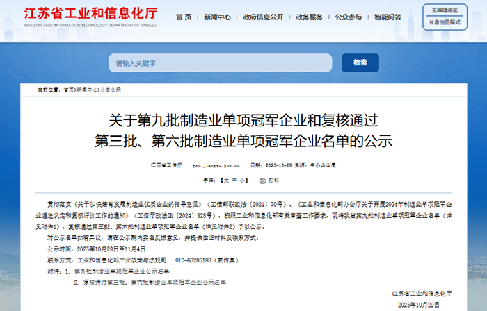 近日,江蘇省工業(yè)和信息化廳公布了《第九批制造業(yè)單項冠軍企業(yè)名單》,中電環(huán)保憑借核心產(chǎn)品“核電凝結水精處理設備”成功登榜,榮獲“制造業(yè)單項冠軍”這一國家級重磅榮譽(yù)。這不僅是對公司技術(shù)實(shí)力與市場(chǎng)地位的高度認可,也是中電環(huán)保在深耕工業(yè)水處理領(lǐng)域三十年征程中的又一重要里程碑。
