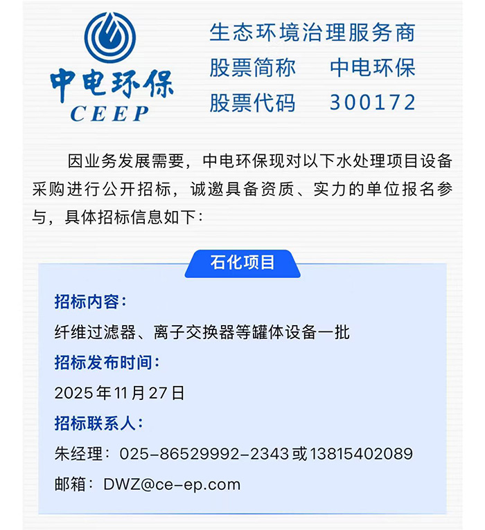 中電環(huán)保股份有限公司是南京市首家環(huán)保上市公司(股票簡(jiǎn)稱(chēng):中電環(huán)保,股票代碼:300172),南京環(huán)保產(chǎn)業(yè)協(xié)會(huì )會(huì )長(cháng)單位,國家級聯(lián)盟理事長(cháng)單位,是生態(tài)環(huán)境治理服務(wù)商,主營(yíng)(3+1):水務(wù)、固危廢、煙氣治理及產(chǎn)業(yè)創(chuàng )新平臺,包括:工業(yè)水處理、污水處理及水環(huán)境綜合治理;固危廢土壤、污泥餐廚垃圾處理;煙氣及VOCS治理;智慧環(huán)保;高端裝備等。