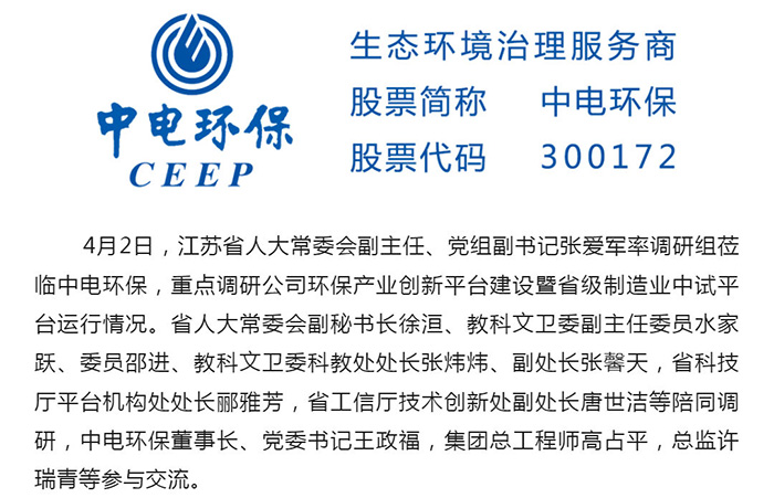 中電環(huán)保股份有限公司是南京市首家環(huán)保上市公司(股票簡稱:中電環(huán)保,股票代碼:300172),南京環(huán)保產(chǎn)業(yè)協(xié)會會長單位,國家級聯(lián)盟理事長單位,是生態(tài)環(huán)境治理服務商,主營(3+1):水務、固危廢、煙氣治理及產(chǎn)業(yè)創(chuàng)新平臺,包括:工業(yè)水處理、污水處理及水環(huán)境綜合治理;固危廢土壤、污泥餐廚垃圾處理;煙氣及VOCS治理;智慧環(huán)保;高端裝備等。
