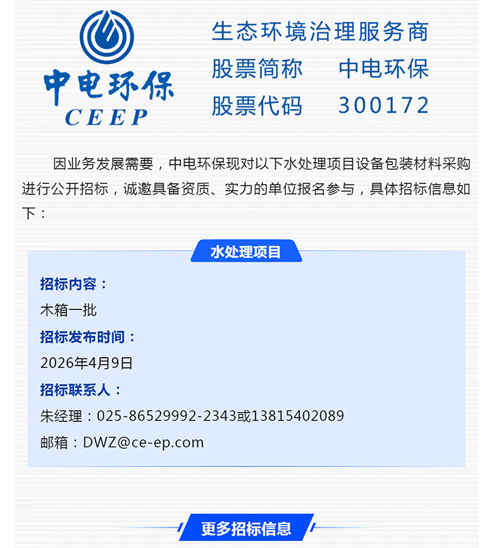 【招標-26-10期】中電環(huán)保誠邀參與:水處理項目設備包裝材料采購公開招標